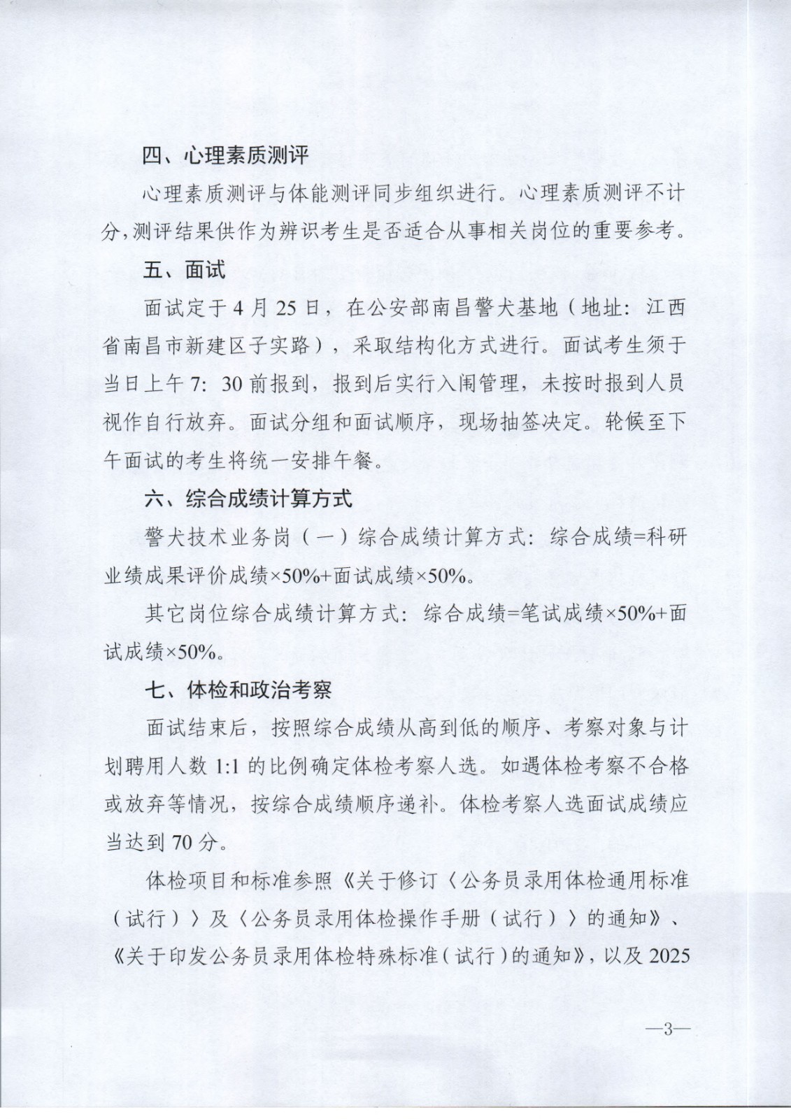 > 公安部南昌警犬基地2026年度公开招聘面试公告
